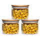 • Allo 220ML Kitchen Storage Box Glass Jars With Wooden Lids - Borosilicate Glass Food Storage Containers Airtight Glass Jar For Tea, Coffee, Spice, Pulses, Masala (Round Glass Jar - Set of 3)