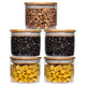 • Allo 220ML Kitchen Storage Box Glass Jars With Wooden Lids - Borosilicate Glass Food Storage Containers Airtight Glass Jar For Tea, Coffee, Spice, Pulses, Masala (Round Glass Jar - Set of 5)