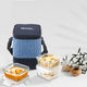 Allo Food Safe Glass Lunch Box, 450°C Microwave Safe Lunch Box, Borosilicate Glass Tiffin for office with Space Blue Tiffin Bag, Set of 3, 320ml x 3, square